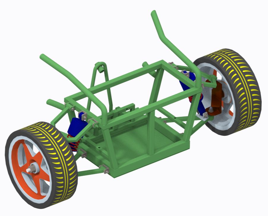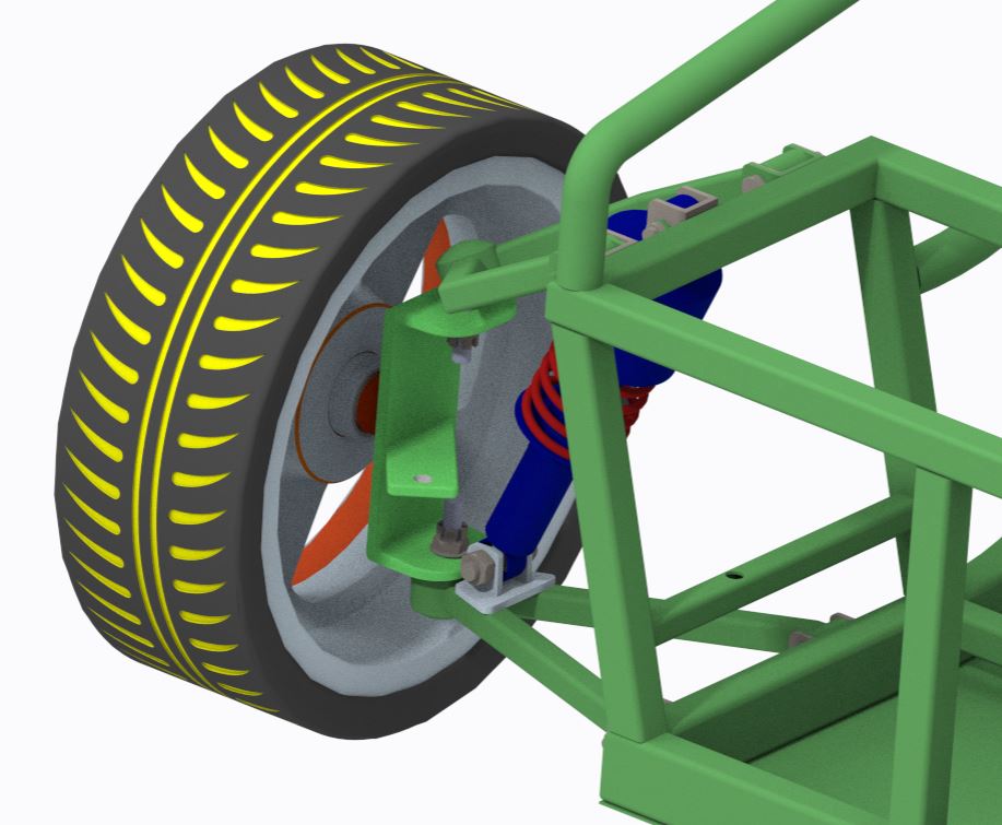 - Kinematic Analysis: Camber, caster (4.43°), and toe angles were optimized for tire contact, with negative camber enhancing cornering grip.