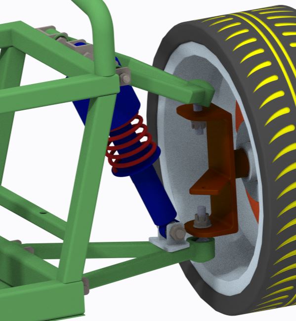 - Wishbone Analysis: Under peak loads, maximum stress was 300 MPa, below the 415 MPa yield strength of AISI 4130, with deformation <1 mm.