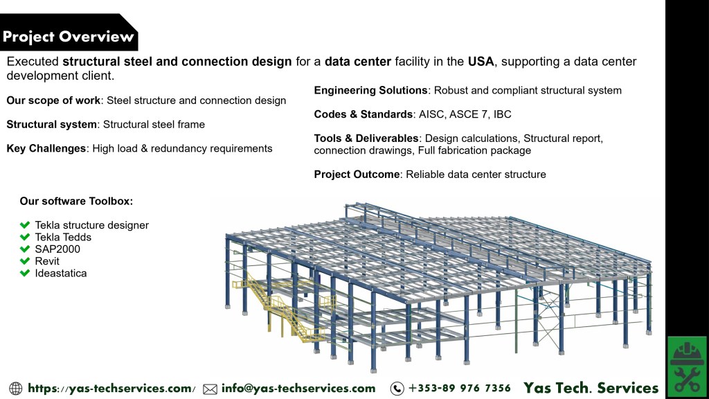 - Delivered a reliable and compliant structural design for a mission-critical facility.