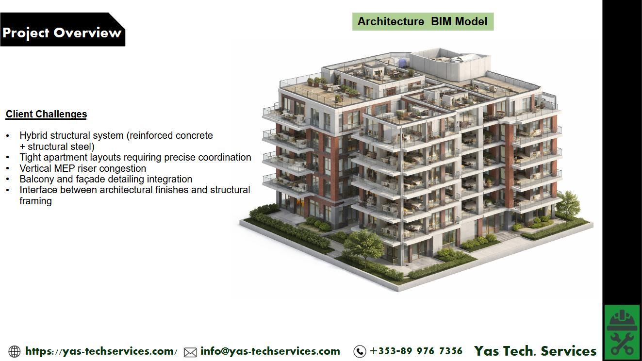 - Tight residential layouts required precise coordination between structure, façade, and MEP services