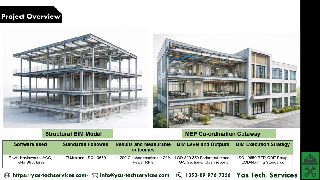 - We established an ISO 19650–compliant BIM execution framework, including BEP, CDE setup, and clear modelling standards.
