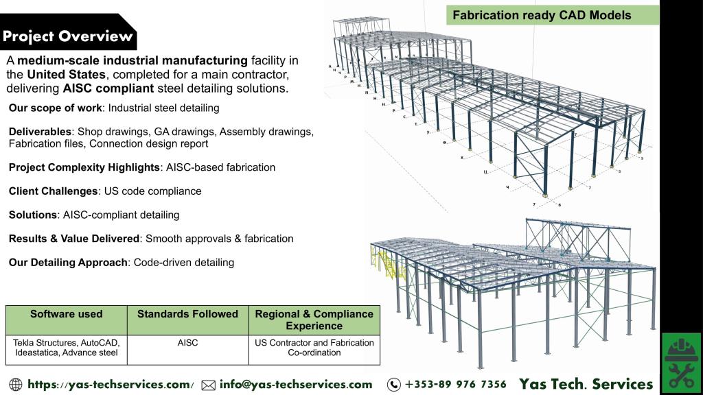 - The project required compliance with AISC standards and US fabrication practices.