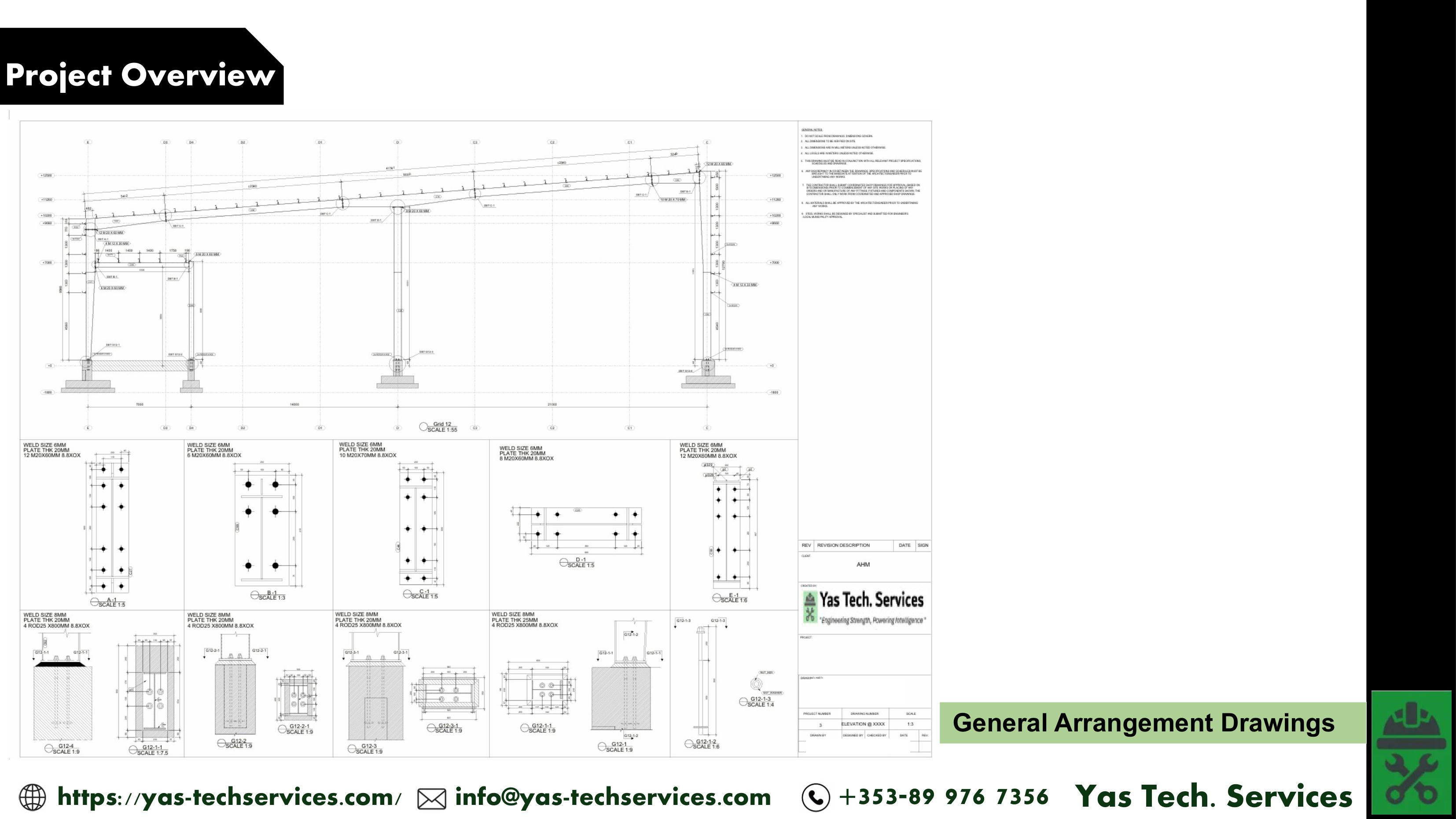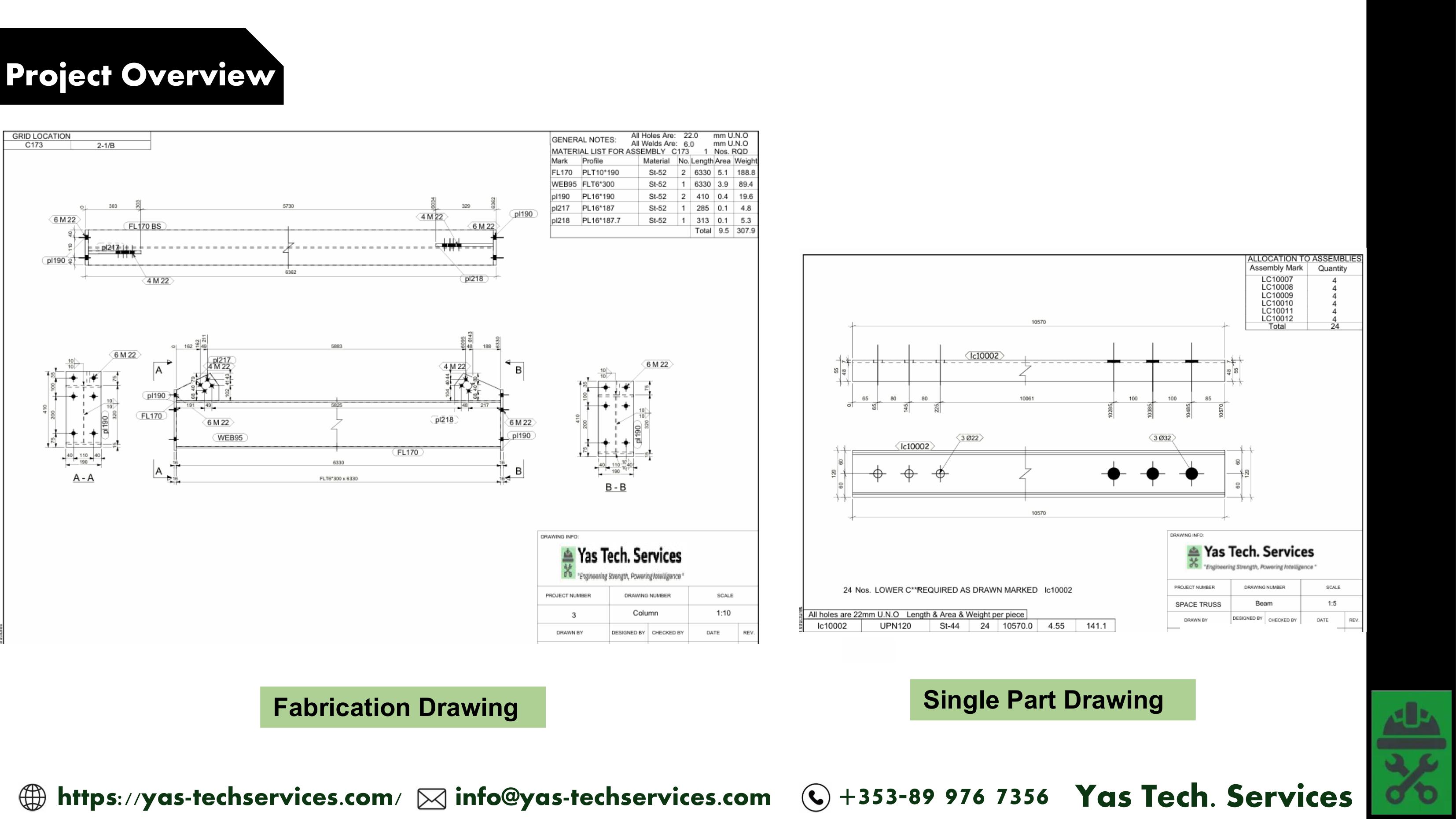 - Assembly drawings supporting erection sequencing.