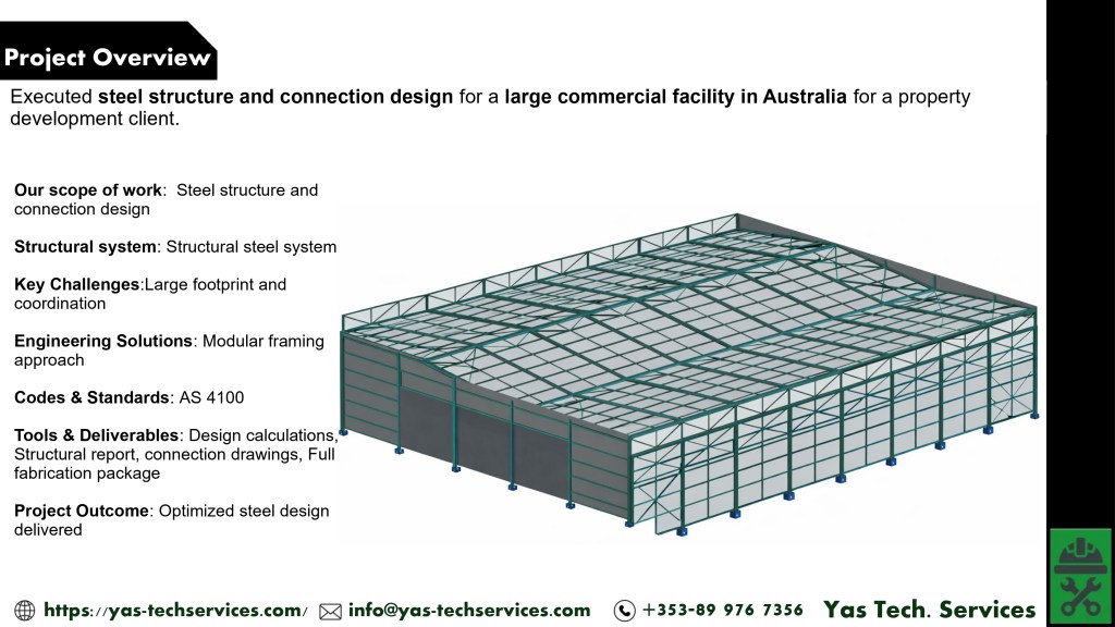 - Delivered an optimized steel design suitable for a large-scale commercial facility.