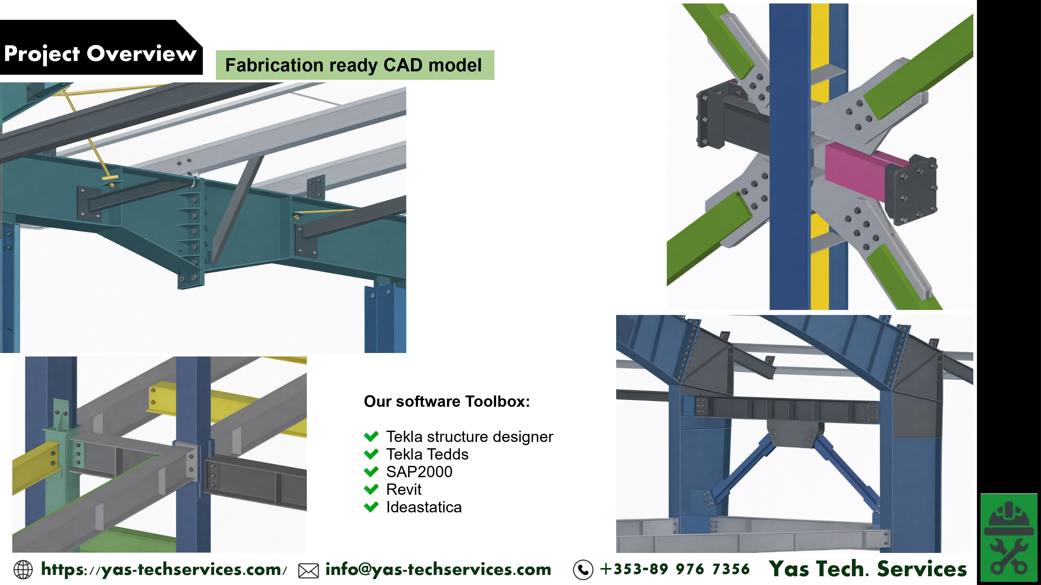 Software: Tekla TSD, Ideastatica, Navisworks, SAP2000