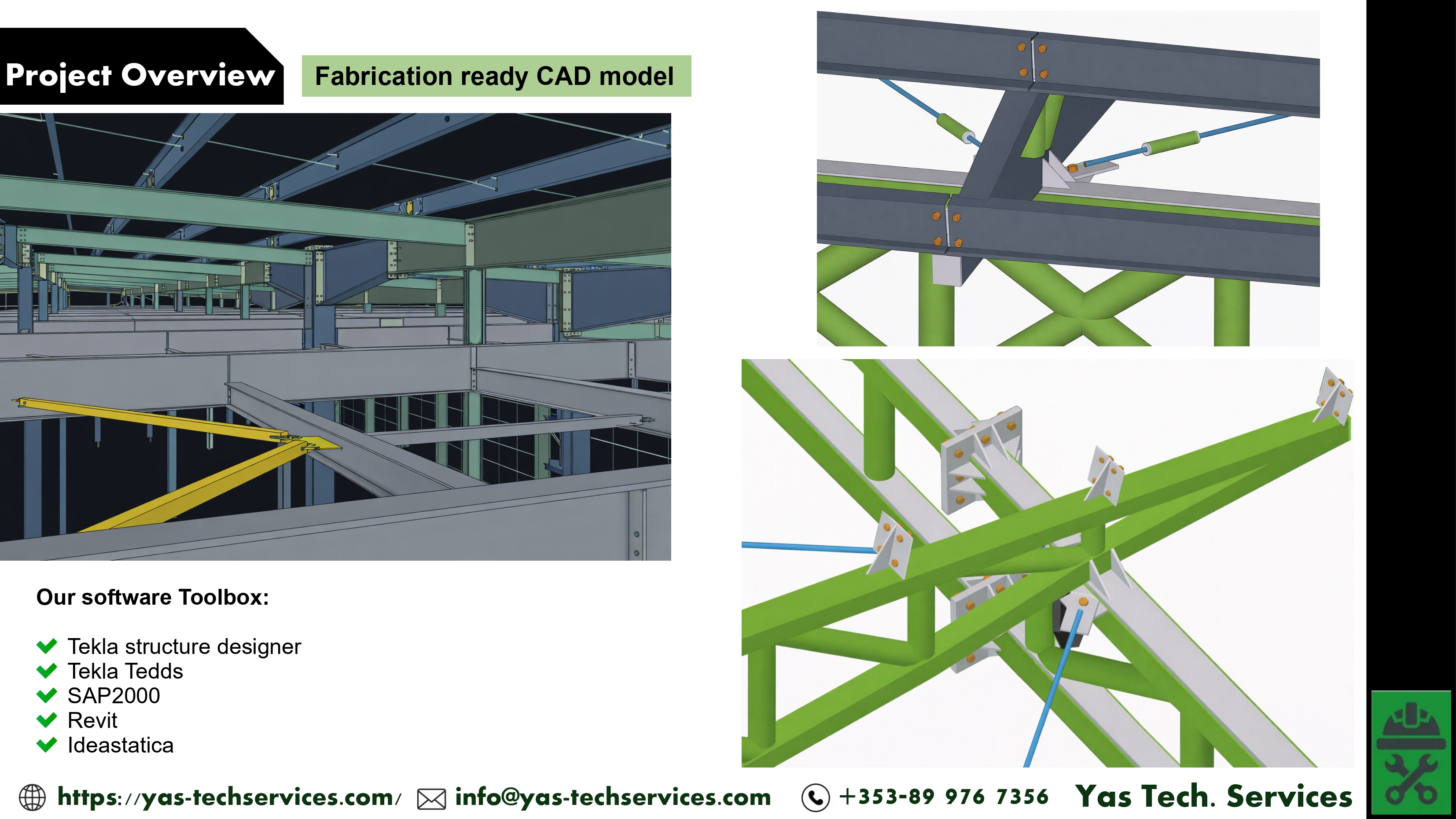 Software: Tekla TSD, Ideastatica, Navisworks, SAP2000