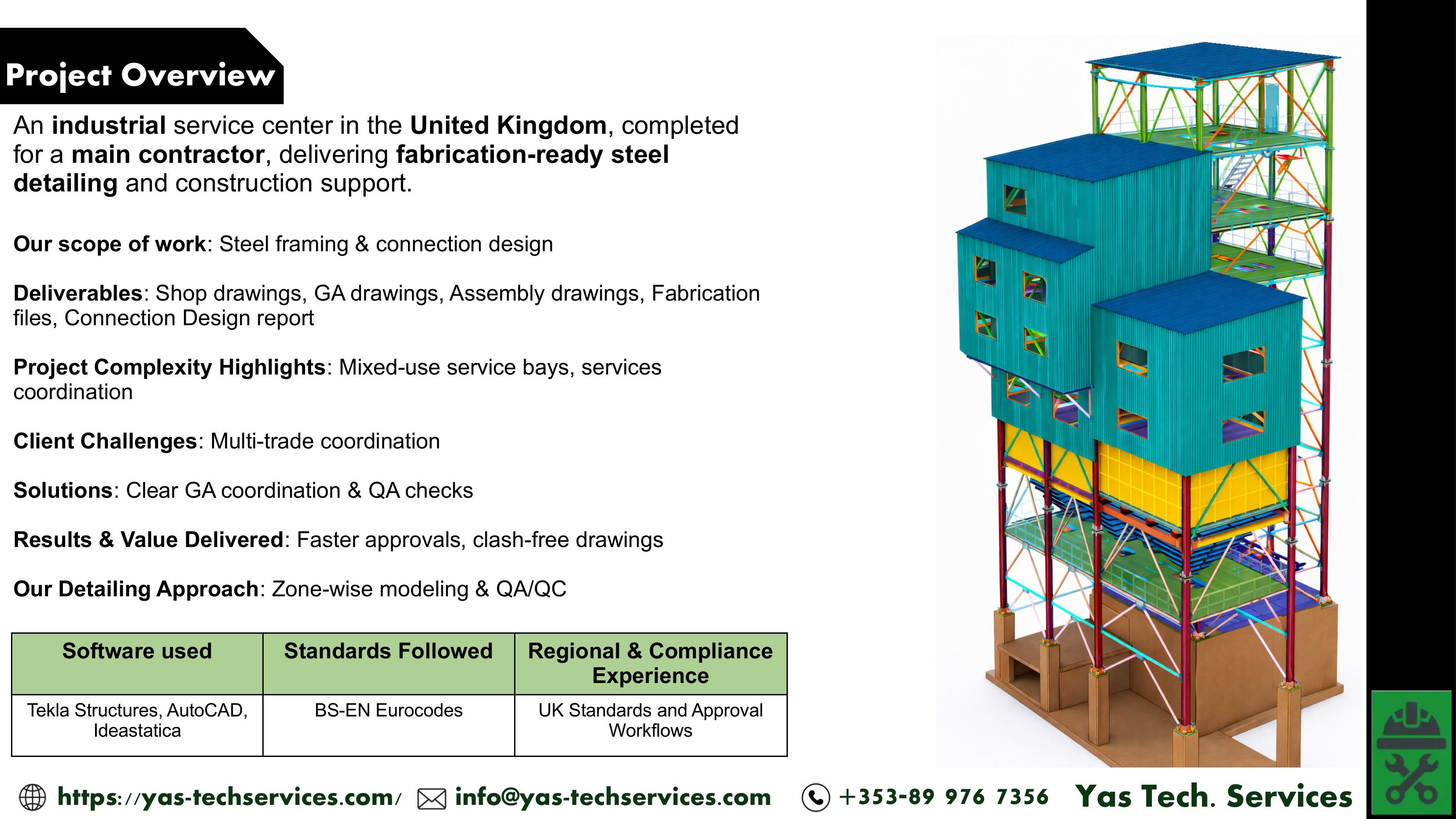 Prepare shop and erection drawings for all steel components (beams, columns, trusses, stairs, handrails, etc.) Include dimensions, welds, bolts, and material specs in line with Eurocode, BS, AISC, AWS, and local codes.